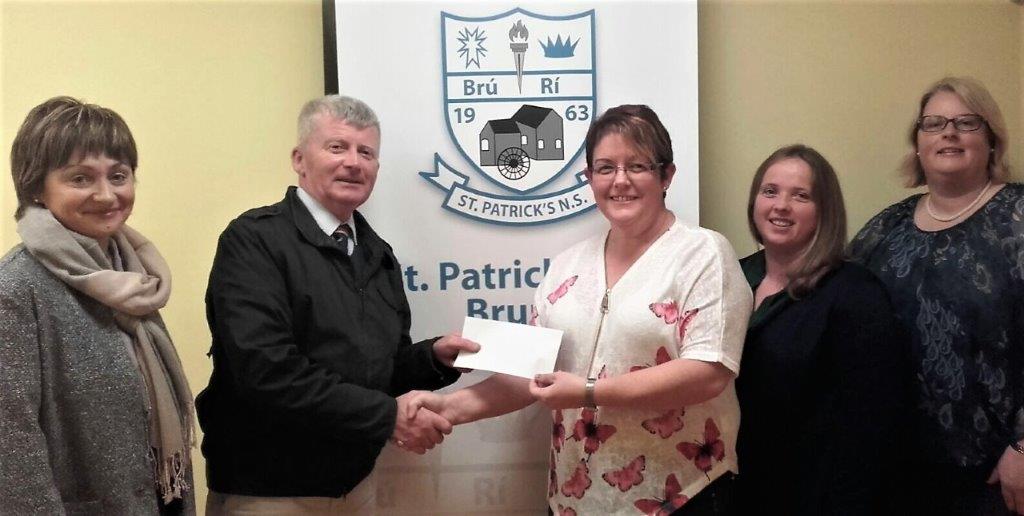 Geraldine Hayden, Donna Finn, Johannah Carey and Marion Frawley, Bruree National School Parents Association, presenting Jimmy Woulfe, principal, with proceeds from the last years fundraising events